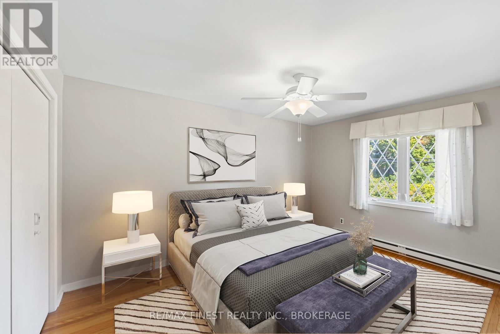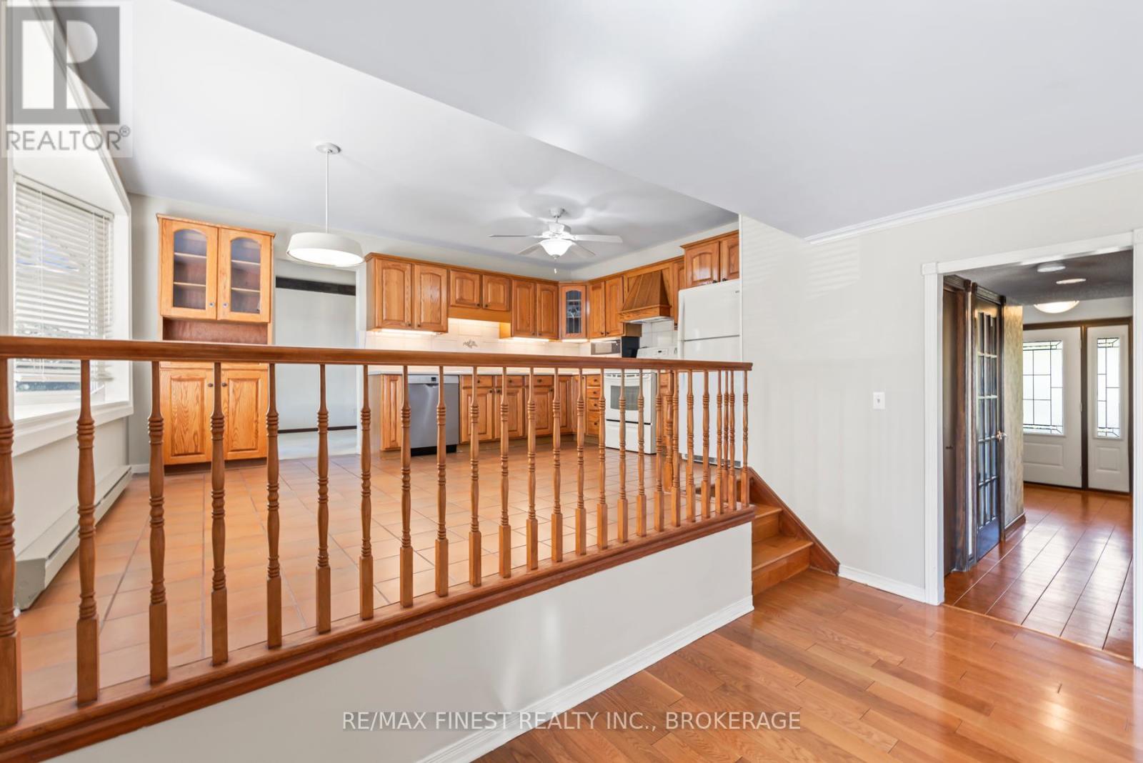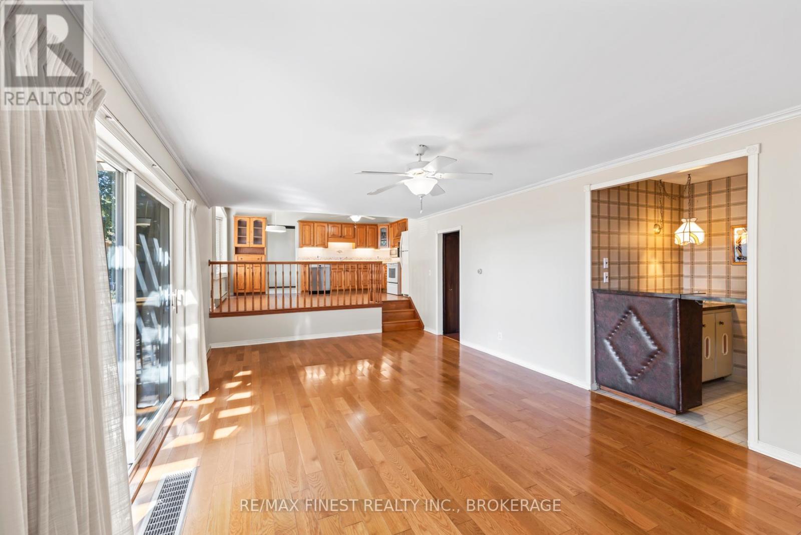 Nestled on a south-facing lot with stunning southwest views of the St. Lawrence River and Gananoque Marina, 80 Market Street offers a rare family opportunity in a charming small town-steps from the water's edge. This spacious multi-level home, lovingly cared for by its original owner since 1973, spans approximately 3100 sq ft of finished living space-ideal for growing families who want room to breathe, play, and make memories. The thoughtful layout revolves around a sunken family room with a gas fireplace and built-in wet bar, flowing to a custom deck overlooking the beautifully landscaped backyard and panoramic river views-perfect for summer barbecues, entertaining friends, and enjoying the Thousand Islands. The bright kitchen flows into dining and living areas with vaulted ceilings-ideal for holiday gatherings and festive occasions. Upstairs, four generously sized bedrooms provide plenty of space for children, guests, or a growing family, including a primary suite with a three-piece ensuite and walk-in closet. A second full four-piece bathroom and a convenient two-piece powder room on the main level make daily life easy. The fully finished lower-level recreation room, with a second gas fireplace, offers a cozy, versatile space for movie nights, homework, games, or playtime. Practical touches include basement laundry, ample storage, and a two-car garage with interior entry. What sets this home apart is its exceptional location-steps from local restaurants, parks, and the popular "Birm" beach where children can swim, build sandcastles, and play safely. Gananoque Marina is literally at your doorstep for easy docking and boating adventures, while Kingston is just a short, scenic 30-minute commute-offering the best of both worlds: small-town charm with urban access. A true family retreat with coveted river views and nearby docking in the heart of the Thousand Islands-ready for your next chapter. (id:28469)