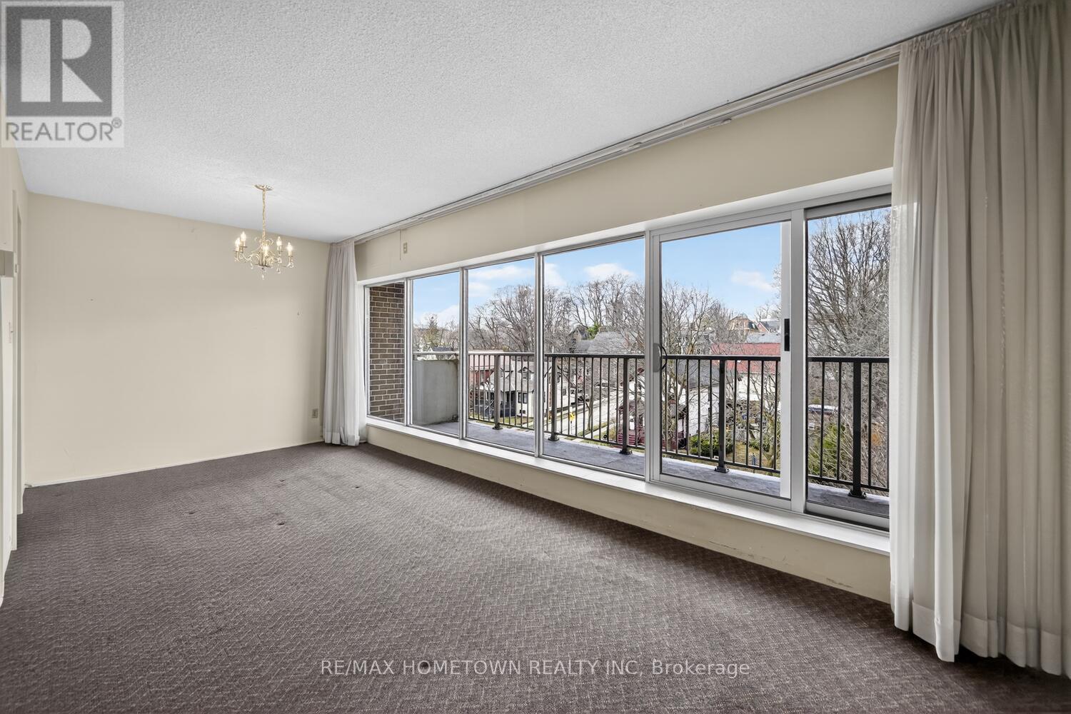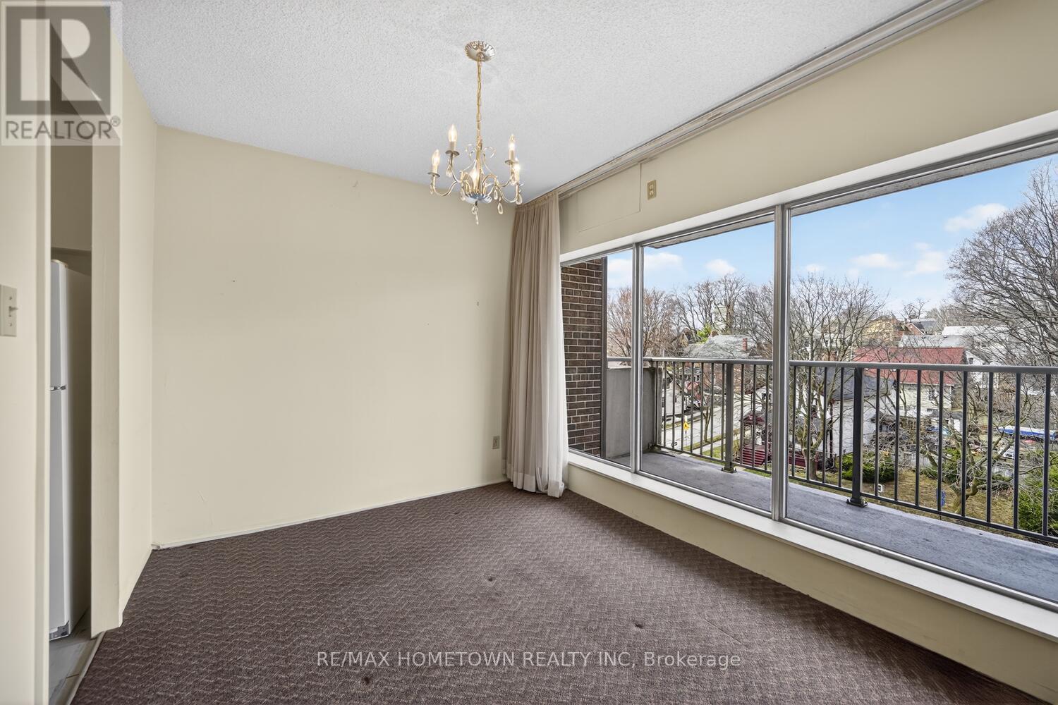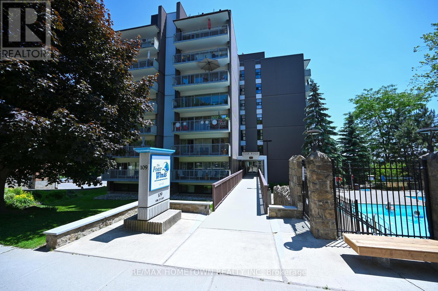 Positioned in the sought-after Four Winds complex, this eighth-floor one-bedroom condo offers an exceptional opportunity to enjoy secure, low-maintenance living in the heart of historic downtown Brockville. From the oversized private balcony, take in sweeping views over the city's charming heritage rooftops-a perspective that truly captures the character and history of this riverfront community. Just one block from the world-renowned St. Lawrence River, you're a short, easy stroll to the vibrant farmers' market, the iconic Brockville Railway Tunnel, and scenic Blockhouse Island. The building itself is well managed and known for its welcoming, community-oriented atmosphere, popular with retirees and professionals alike. Residents enjoy access to a beautifully maintained outdoor pool and garden area-perfect for relaxing afternoons or entertaining visiting family. The unit presents a solid layout with excellent natural light and outstanding potential for those looking to personalize their space; while some updating to kitchen and bath areas may be considered, the value here lies in the location, lifestyle, and view. An ideal option for right sizing , retirees, or those seeking a secure pied-à-terre in one of Eastern Ontario's most picturesque waterfront towns, this condo delivers comfort, convenience, and long-term upside in equal measure. (id:28469)