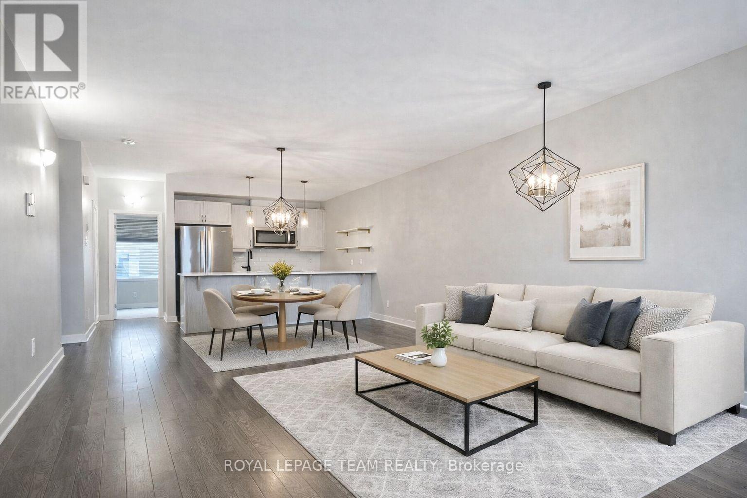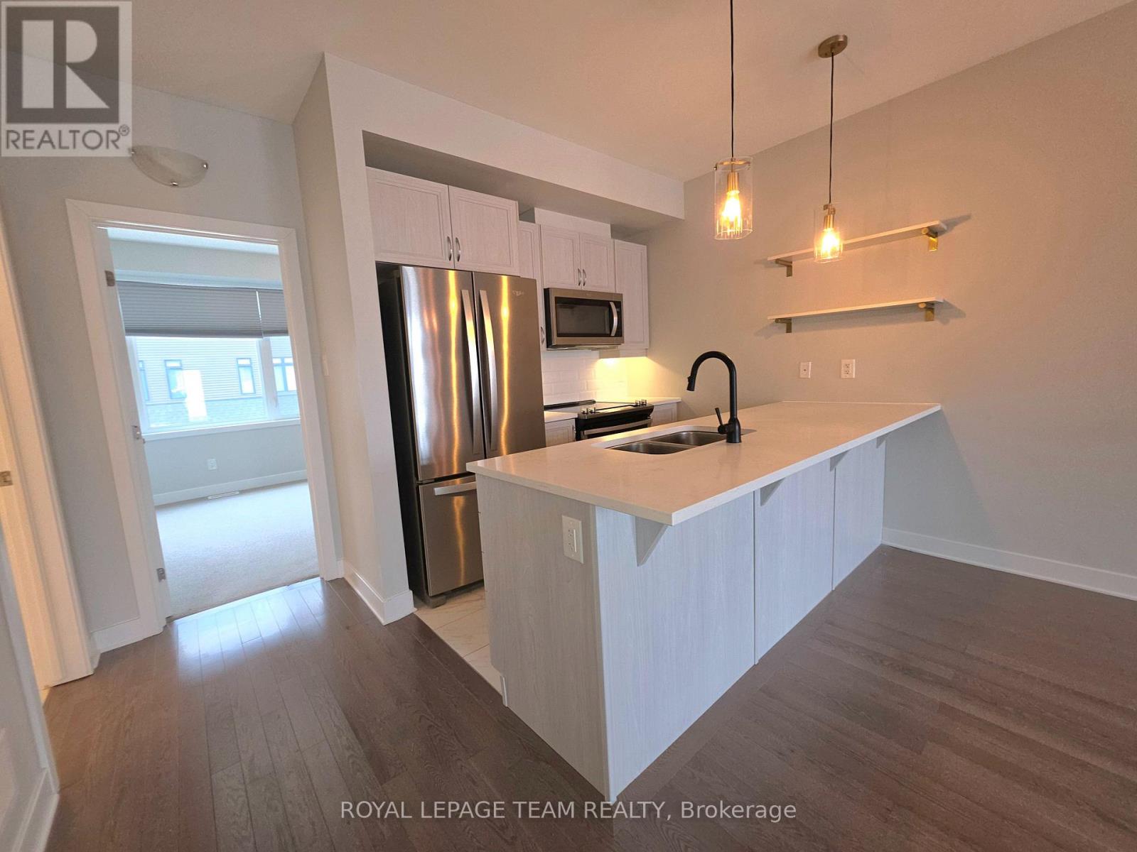 Welcome to easy, stylish living in this beautifully upgraded stacked condo-perfect for those seeking comfort, convenience, and a space that truly feels like home. With both a private garage and an additional outdoor parking space, everyday living is effortless from the moment you arrive. Step inside to a bright, open-concept main level where rich oak engineered hardwood floors set the tone for a warm and inviting space-ideal for relaxing after a long day or hosting friends. The modern kitchen features stainless steel appliances, sleek quartz countertops, a timeless subway tile backsplash, and a breakfast bar with pendant lighting-perfect for morning coffee or casual evenings in. The primary bedroom offers a peaceful retreat with plenty of natural light, soft upgraded carpeting, and a walk-in closet to keep everything organized. The spa-inspired 4-piece bathroom adds a touch of luxury with its quartz counters, deep Roman tub, and separate glass shower. Enjoy your morning coffee or unwind in the evening on the cozy balcony, adding a charming outdoor extension to your living space. Downstairs, the fully finished lower level provides a versatile family room-perfect for movie nights, a home office, or a workout area. A spacious second bedroom with its own walk-in closet and a full bathroom makes it ideal for guests or shared living. The laundry area and mudroom with direct garage access add everyday practicality. Located close to parks, shopping, and all amenities, this home offers the perfect balance of lifestyle and convenience-everything you need, right at your doorstep. Rental Application, Credit Check, ID, Proof of Employment required. Utilities are not included in rent. No pets and no smoking. (id:28469)