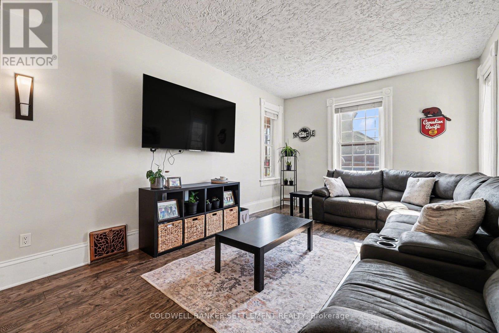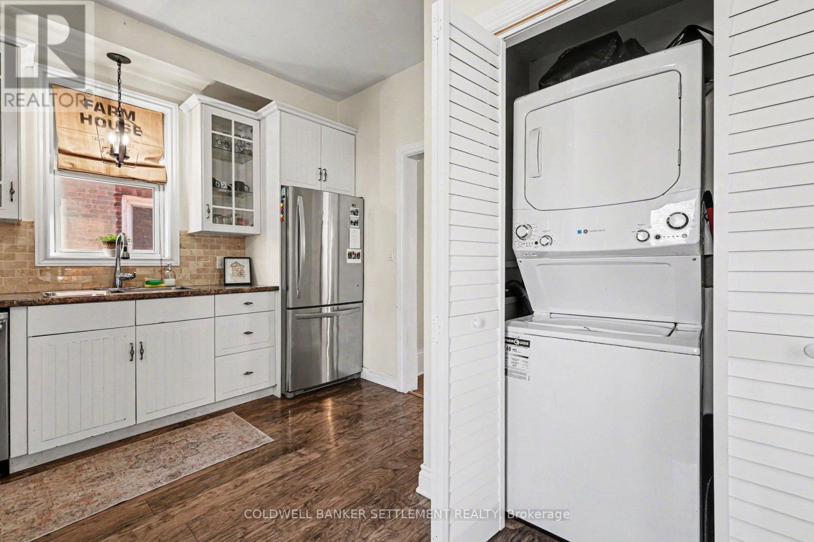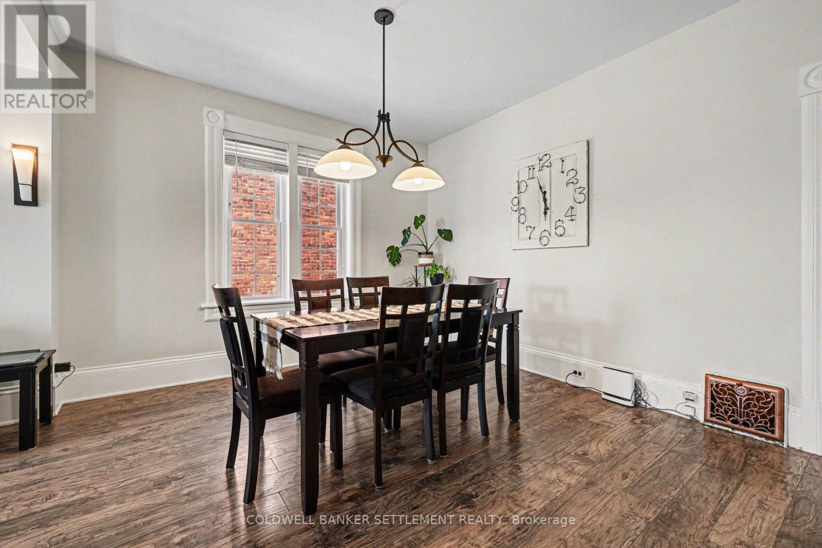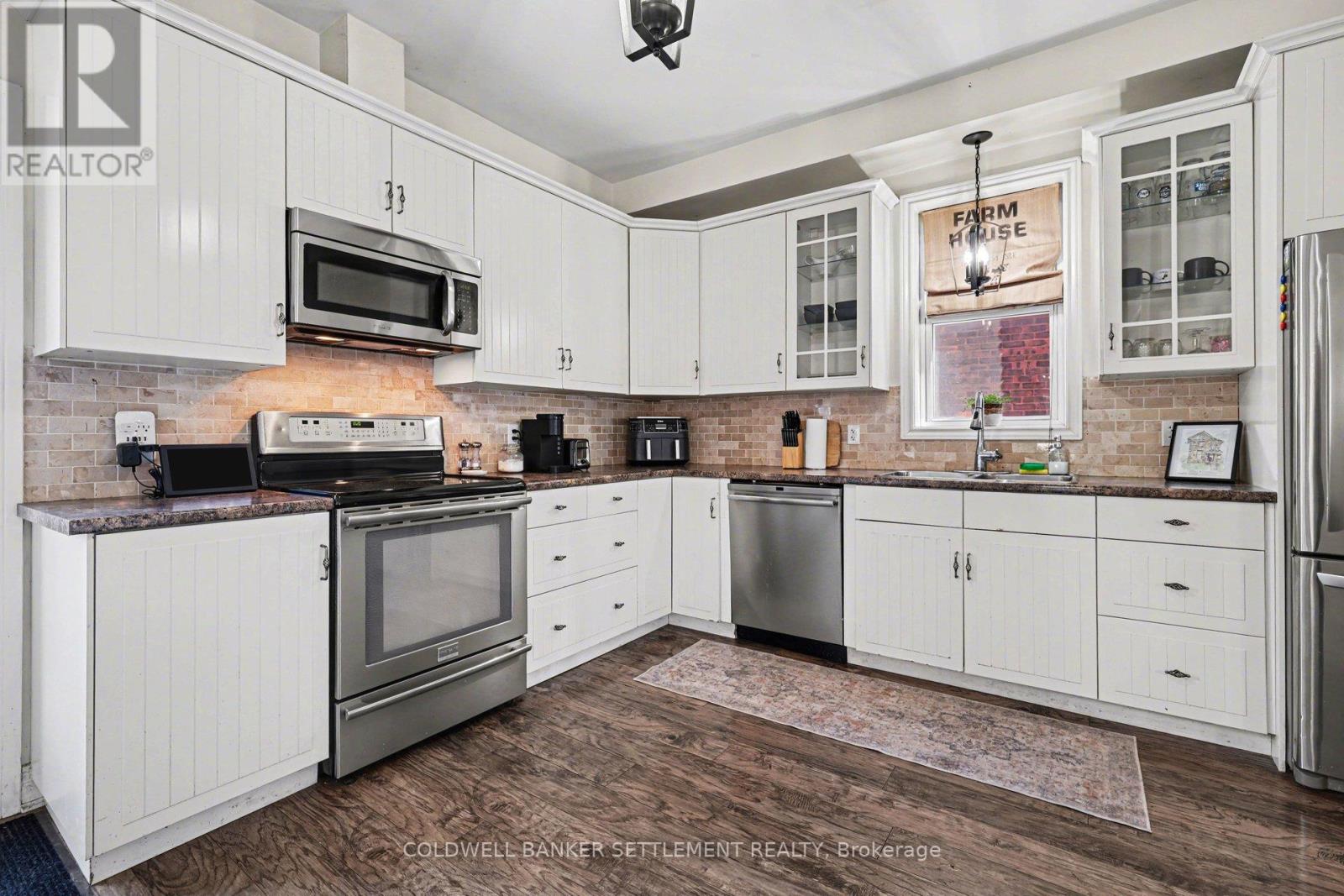 Charming all-brick 3-bedroom home with a versatile fourth upper-level room-currently used as a walk-in closet-offering a perfect blend of original character and modern updates. Ideally situated within walking distance to the downtown core, this home provides convenient access to a wide range of local amenities. Inside, the partially refreshed interior highlights classic vintage details paired with laminate flooring. The bright, open-concept living and dining area creates a welcoming space for both everyday living and entertaining. The updated kitchen features tasteful finishes, stainless steel appliances, and the added convenience of main-floor laundry. From here, step out to a spacious new two-tier deck-ideal for outdoor dining and hosting. The fully fenced yard offers privacy and security, while a newly built rear deck enhances the outdoor living space. A large, detached shed, along with an additional gardening shed, provides plenty of storage. An excellent opportunity for investors, first-time buyers, or those looking to downsize, this home combines comfort, charm, and convenience. (id:28469)