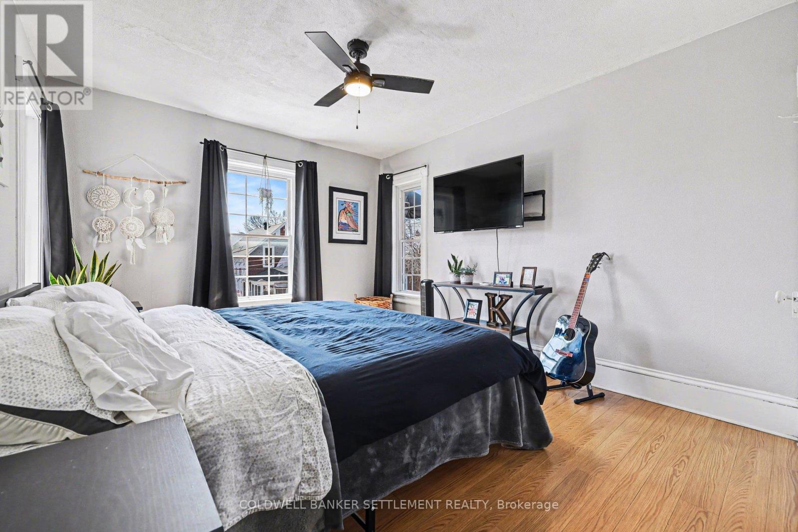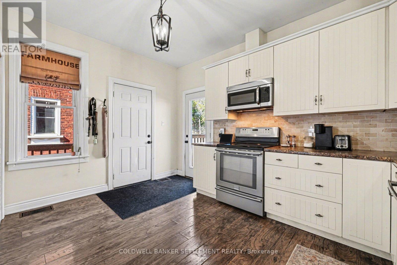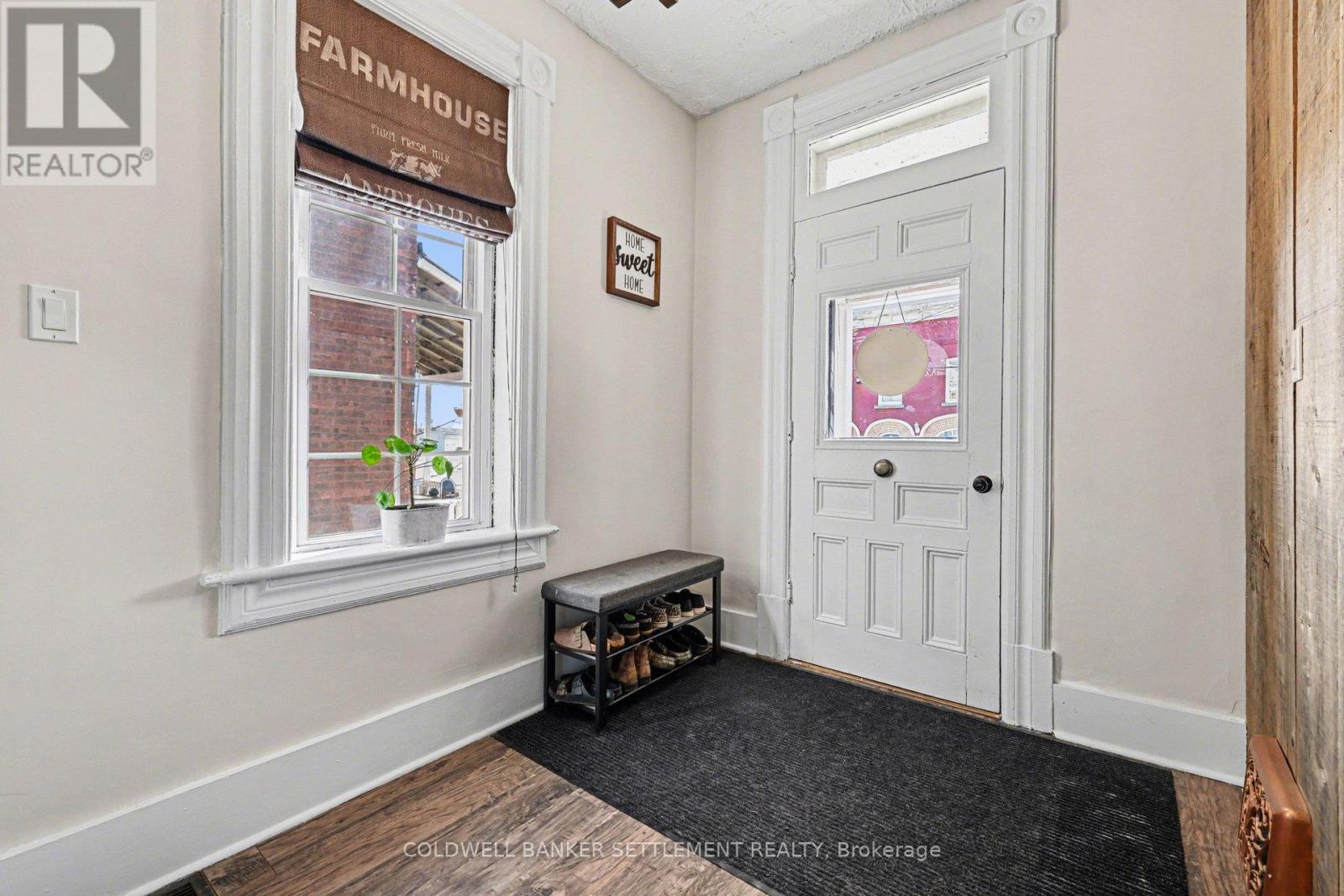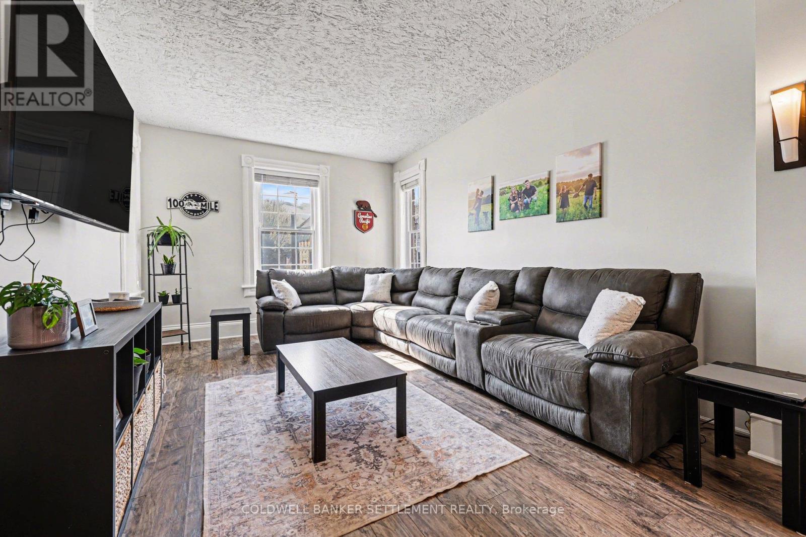 Charming all-brick 3-bedroom home with a versatile fourth upper-level room-currently used as a walk-in closet-offering a perfect blend of original character and modern updates. Ideally situated within walking distance to the downtown core, this home provides convenient access to a wide range of local amenities. Inside, the partially refreshed interior highlights classic vintage details paired with laminate flooring. The bright, open-concept living and dining area creates a welcoming space for both everyday living and entertaining. The updated kitchen features tasteful finishes, stainless steel appliances, and the added convenience of main-floor laundry. From here, step out to a spacious new two-tier deck-ideal for outdoor dining and hosting. The fully fenced yard offers privacy and security, while a newly built rear deck enhances the outdoor living space. A large, detached shed, along with an additional gardening shed, provides plenty of storage. An excellent opportunity for investors, first-time buyers, or those looking to downsize, this home combines comfort, charm, and convenience. (id:28469)