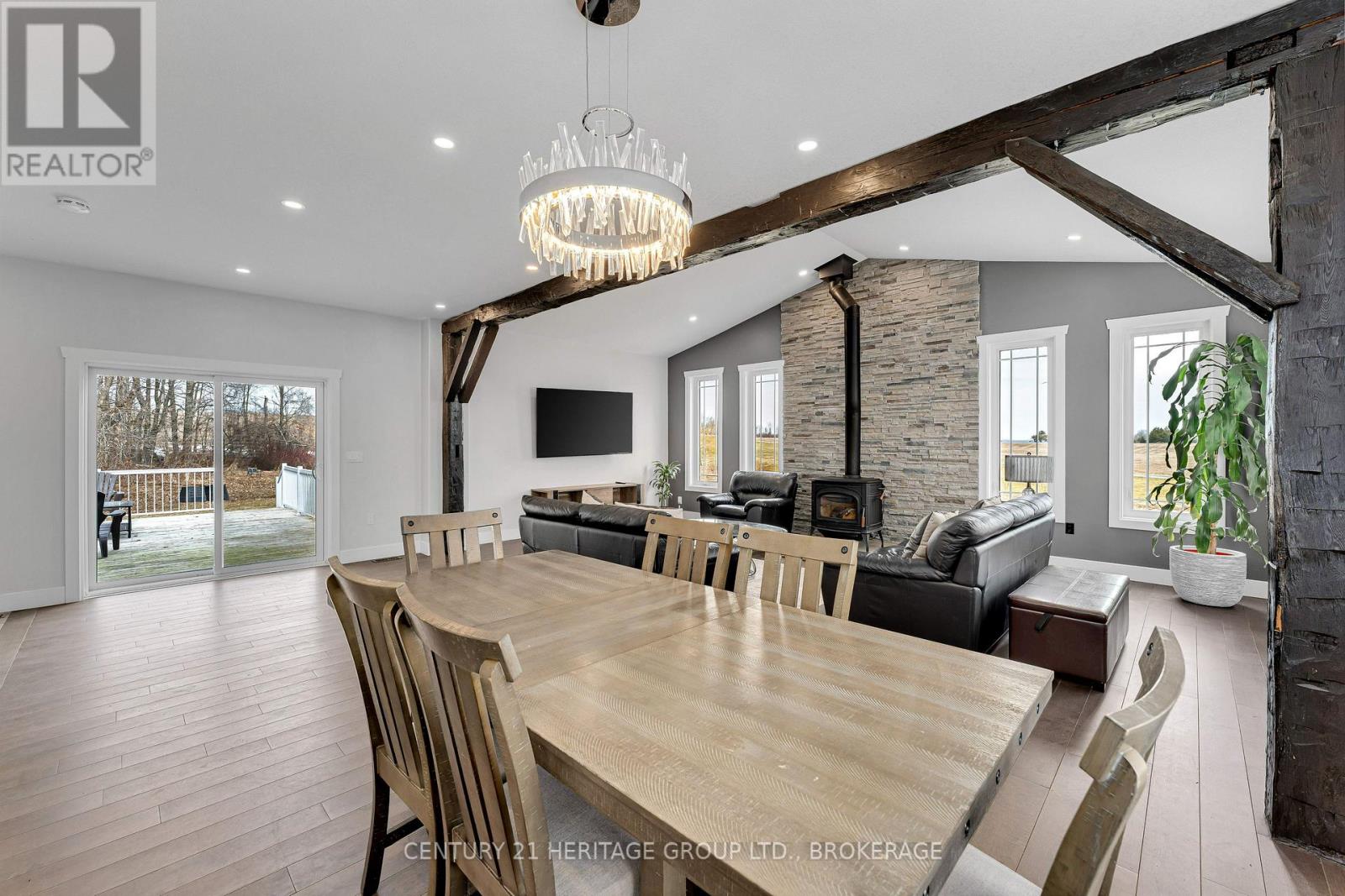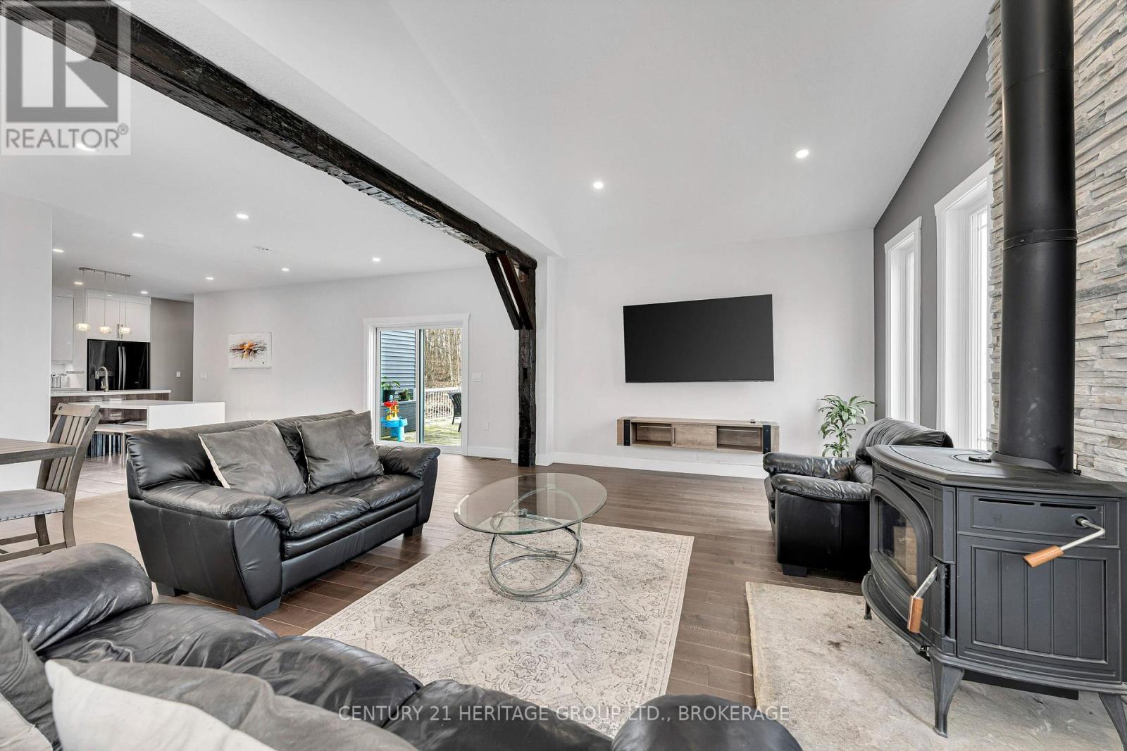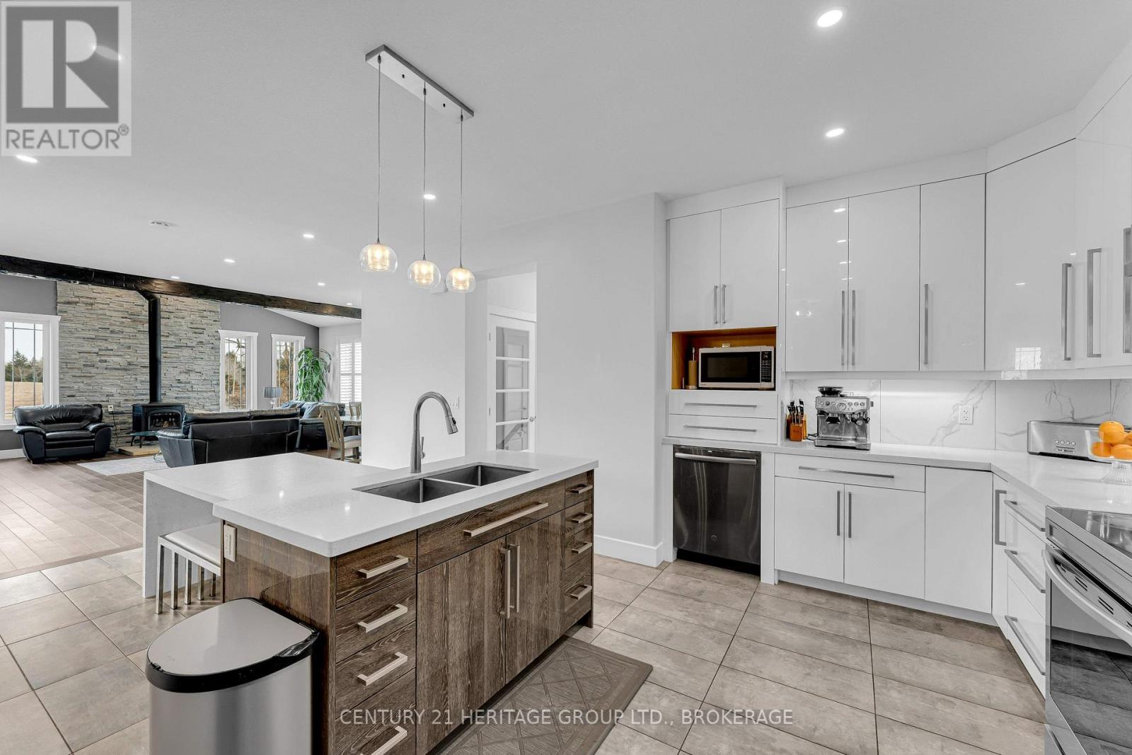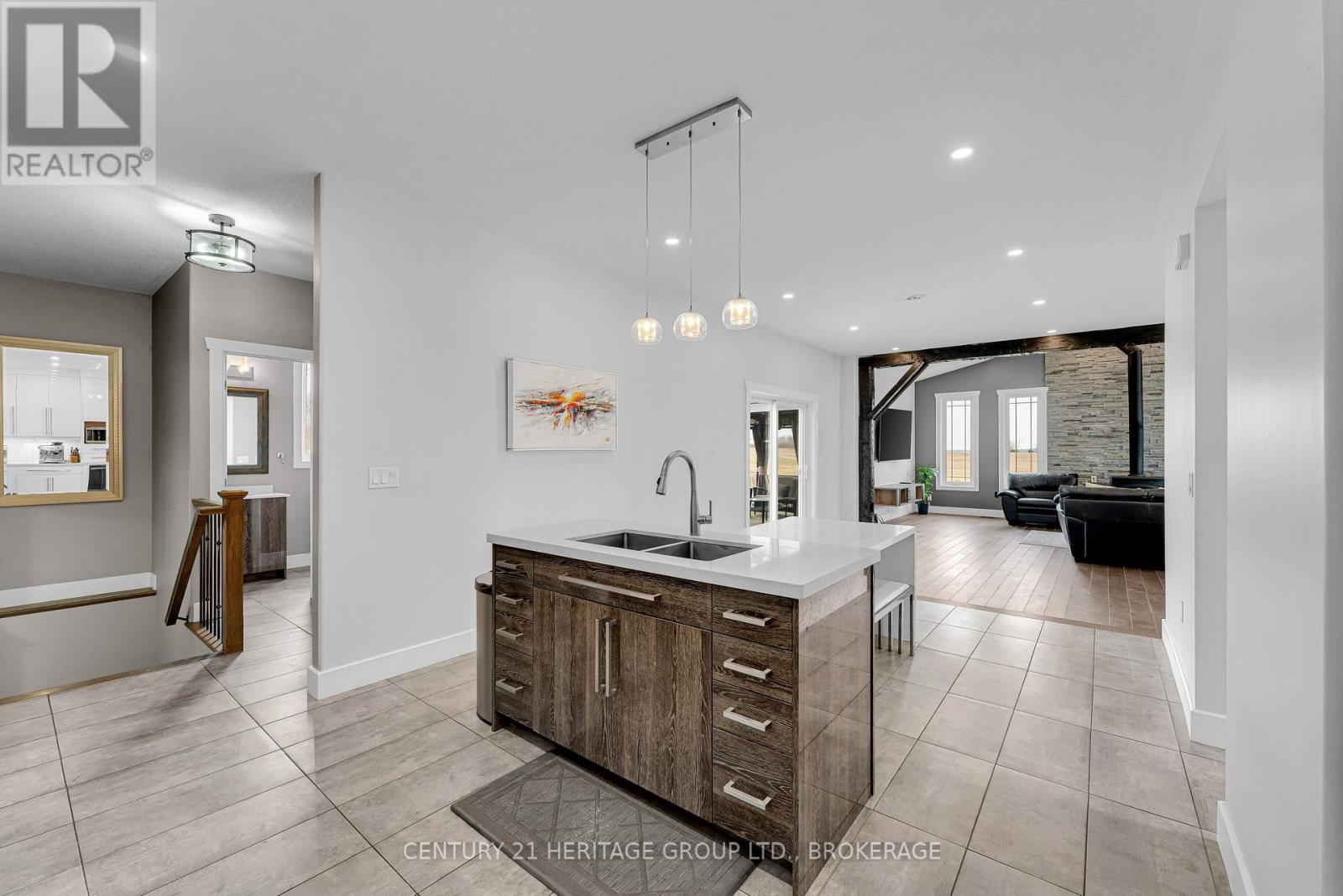Set on a picturesque three-acre property just minutes from downtown and the 401, this exceptional residence offers a rare blend of privacy, space, and refined living. Thoughtfully designed with four bedrooms and four bathrooms, the home showcases quality craftsmanship and a layout that balances everyday comfort with elevated style. A welcoming mudroom entry leads into a beautifully appointed main floor featuring a dedicated office, convenient laundry, and elegant living spaces. At the heart of the home is a stunning, light-filled kitchen with quartz countertops, flowing seamlessly into the dining area and an impressive family room with soaring vaulted ceilings and a wood-burning fireplace. Hardwood flooring throughout adds warmth and sophistication. The primary suite is a true retreat, complete with a well-appointed ensuite and generous closet space. The fully finished lower level offers exceptional flexibility with a spacious rec room, additional bedroom, bathroom, and ample storage-ideal for guests or multi-generational living. The expansive grounds provide endless opportunities for outdoor enjoyment, complemented by a three-car garage. Planned enhancements to nearby Cecil and Wilma Graham Park, including a boat ramp, picnic areas, and walking paths, are expected by 2027, adding even more lifestyle value to this already desirable location. A rare opportunity to enjoy the best of country living with city convenience. (id:28469)