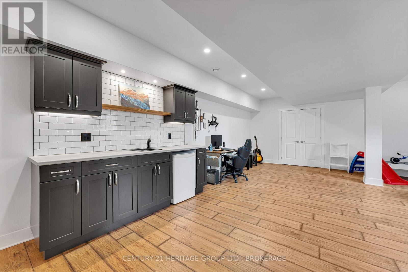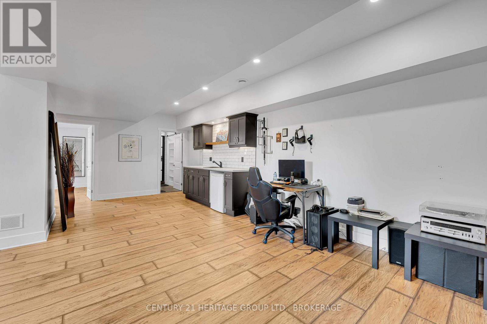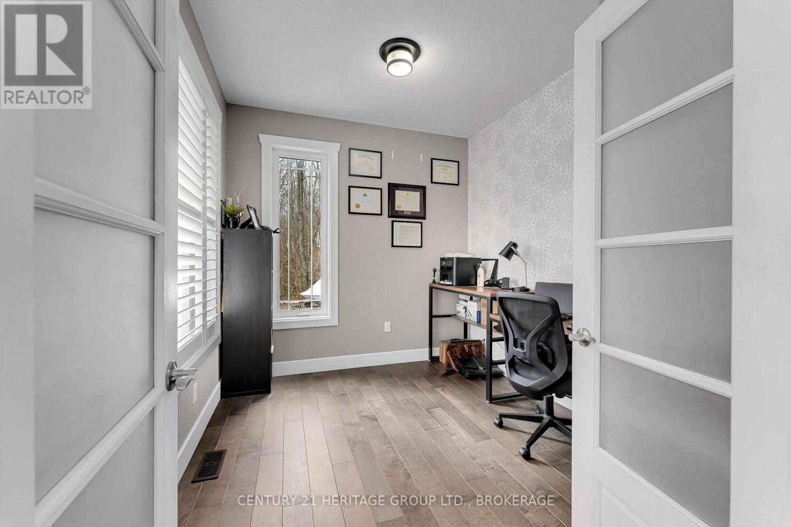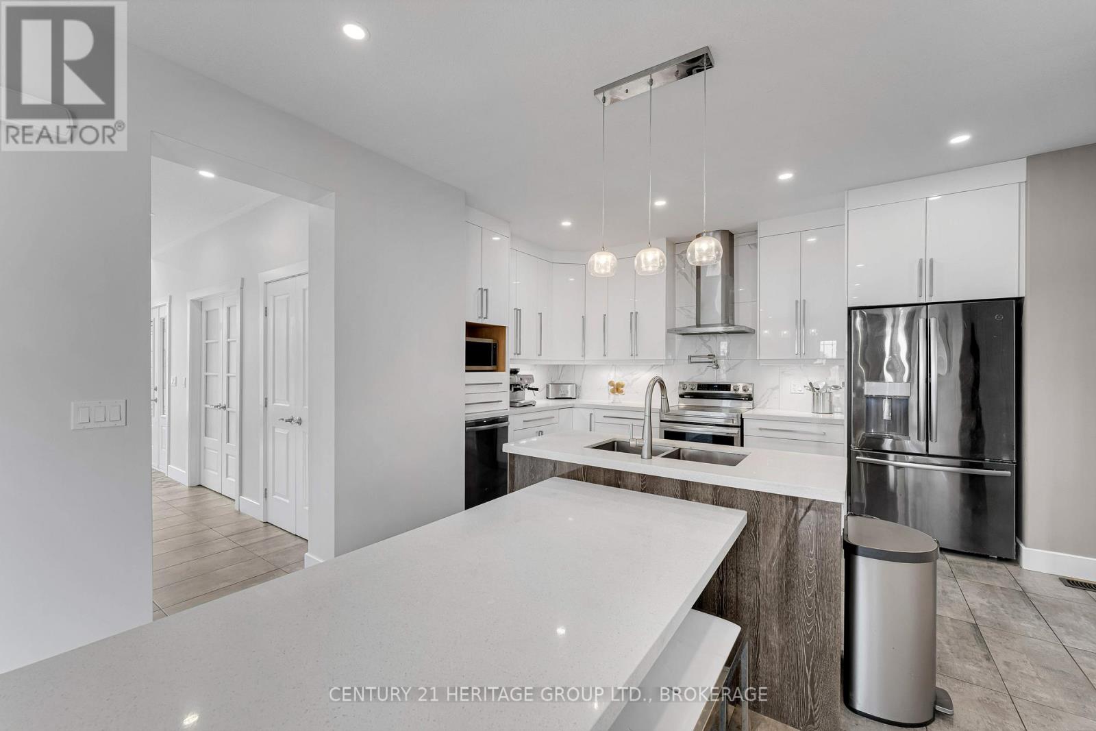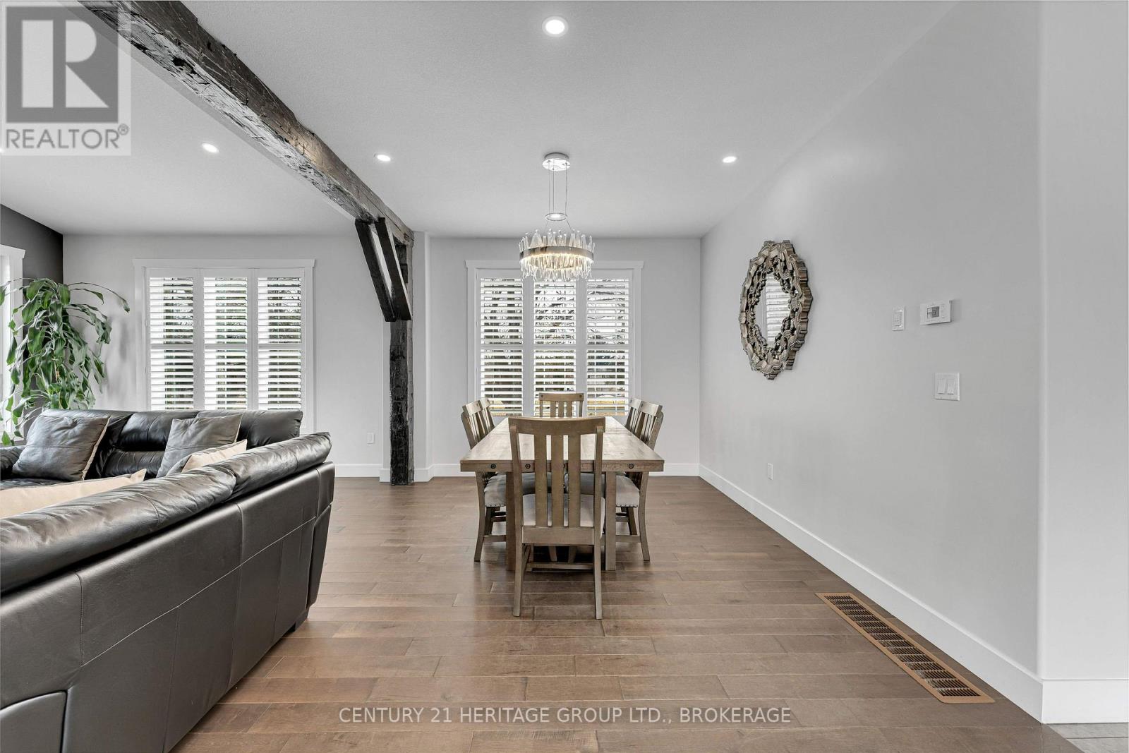 Set on a picturesque three-acre property just minutes from downtown and the 401, this exceptional residence offers a rare blend of privacy, space, and refined living. Thoughtfully designed with four bedrooms and four bathrooms, the home showcases quality craftsmanship and a layout that balances everyday comfort with elevated style. A welcoming mudroom entry leads into a beautifully appointed main floor featuring a dedicated office, convenient laundry, and elegant living spaces. At the heart of the home is a stunning, light-filled kitchen with quartz countertops, flowing seamlessly into the dining area and an impressive family room with soaring vaulted ceilings and a wood-burning fireplace. Hardwood flooring throughout adds warmth and sophistication. The primary suite is a true retreat, complete with a well-appointed ensuite and generous closet space. The fully finished lower level offers exceptional flexibility with a spacious rec room, additional bedroom, bathroom, and ample storage-ideal for guests or multi-generational living. The expansive grounds provide endless opportunities for outdoor enjoyment, complemented by a three-car garage. Planned enhancements to nearby Cecil and Wilma Graham Park, including a boat ramp, picnic areas, and walking paths, are expected by 2027, adding even more lifestyle value to this already desirable location. A rare opportunity to enjoy the best of country living with city convenience. (id:28469)