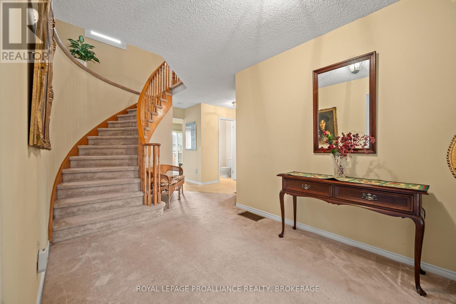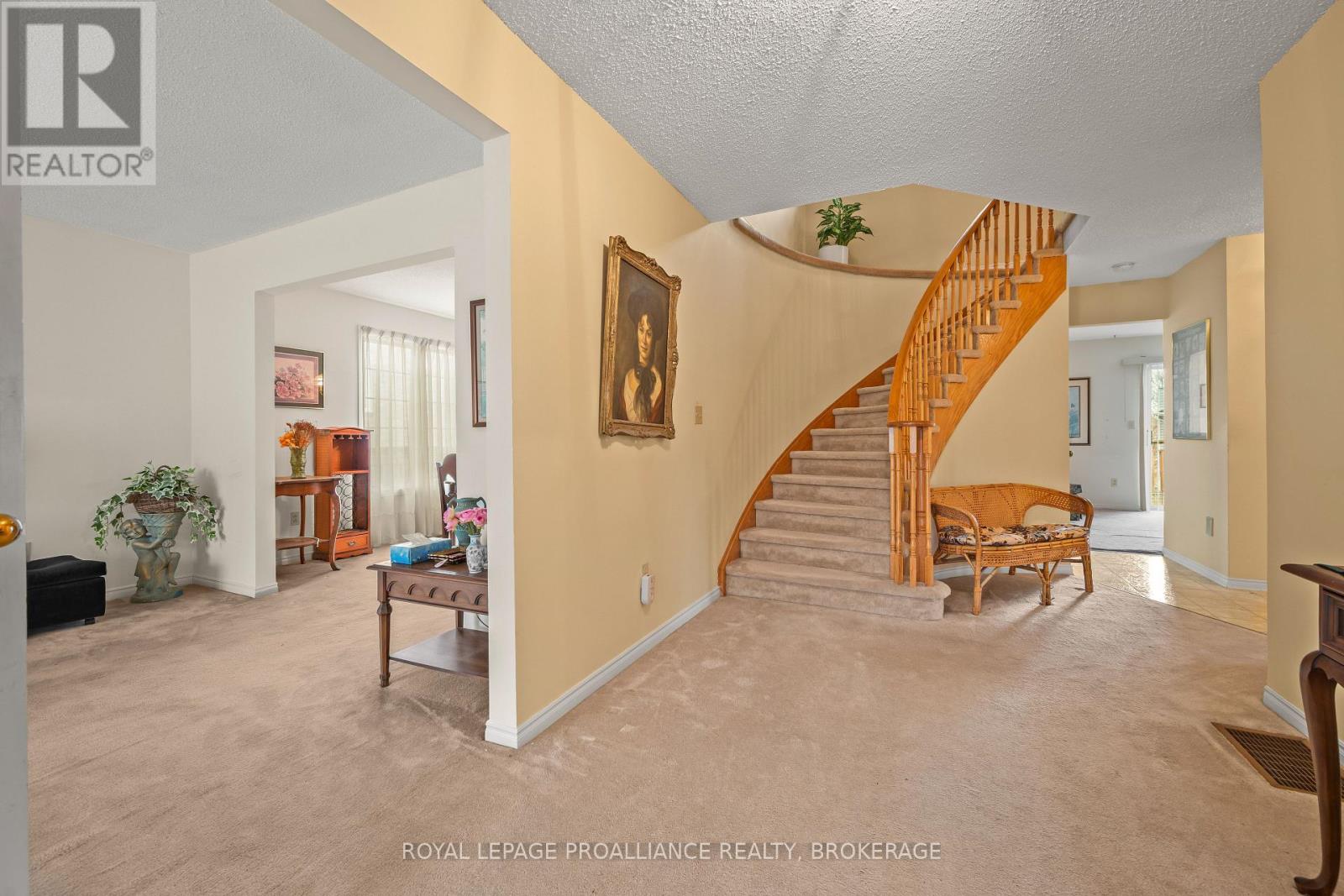 Welcome to this Westwoods home offering 4 bedrooms & 2.5 bathrooms, set on a fully fenced lot with a large rear deck. A large front foyer leads into the main level, where natural light carries through multiple living areas. The kitchen offers ample cabinetry & workspace, connecting to both a separate living room with fireplace & an additional sitting area. Main floor laundry with direct garage access adds everyday convenience, along with a 2pc bathroom. The second level features four bedrooms, including a primary suite with a walk-in closet & private 4pc ensuite. The remaining bedrooms are generously sized & share a full 4pc main bathroom. The lower level extends the home with a partially finished walk-out basement offering additional living space, storage, & flexibility for a variety of uses. The fully fenced backyard is anchored by a large rear deck with plenty of room for outdoor seating, along with a generous lawn area. Located in Kingston's mature West-End neighborhood of Westwoods just steps to Dunham Park, a short stroll to multiple reputable schools & a quick drive to all of your desired West-End amenities. A confident offering with the scale, layout, & setting to stand on its own. (id:28469)