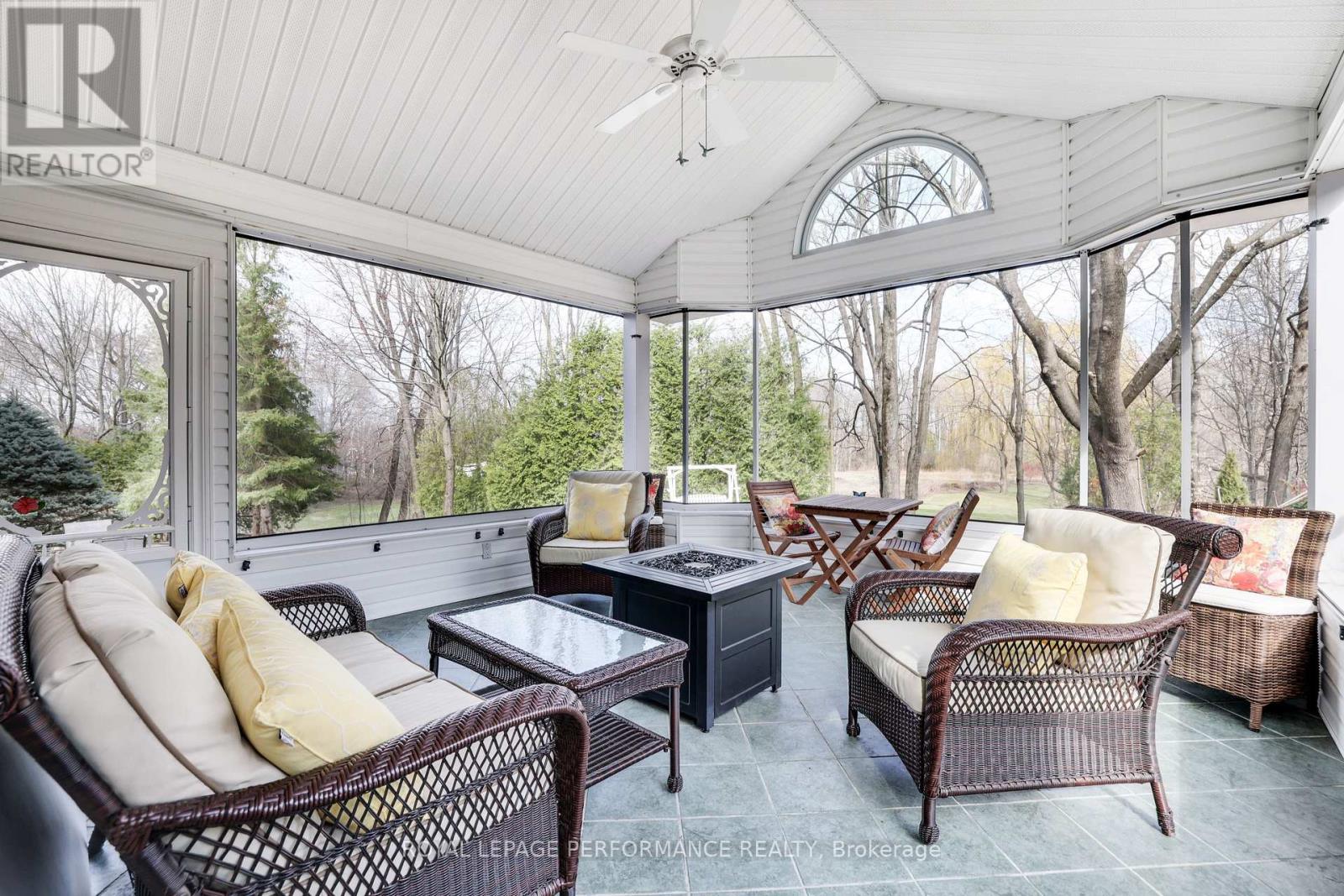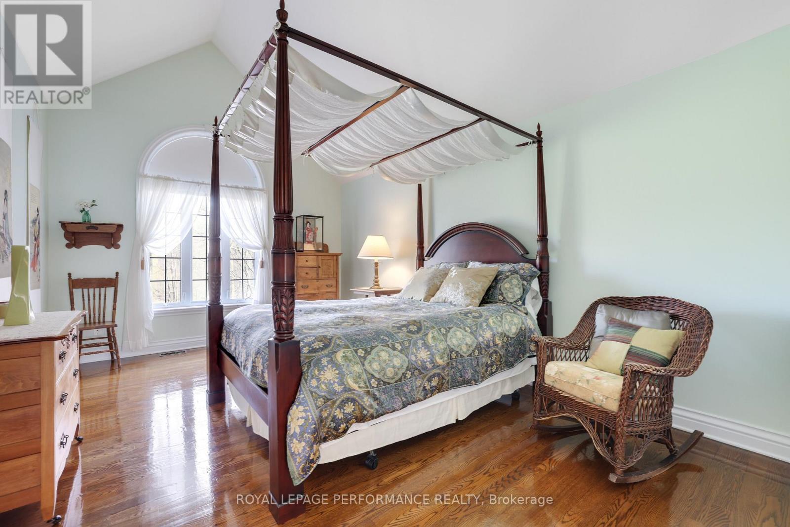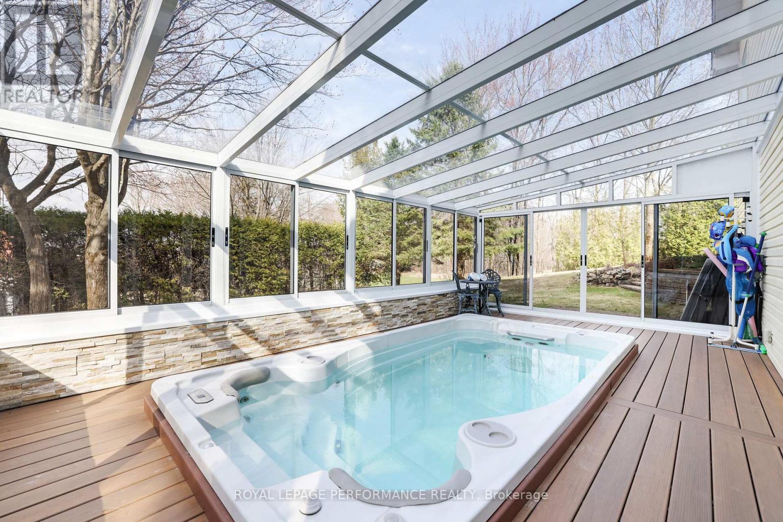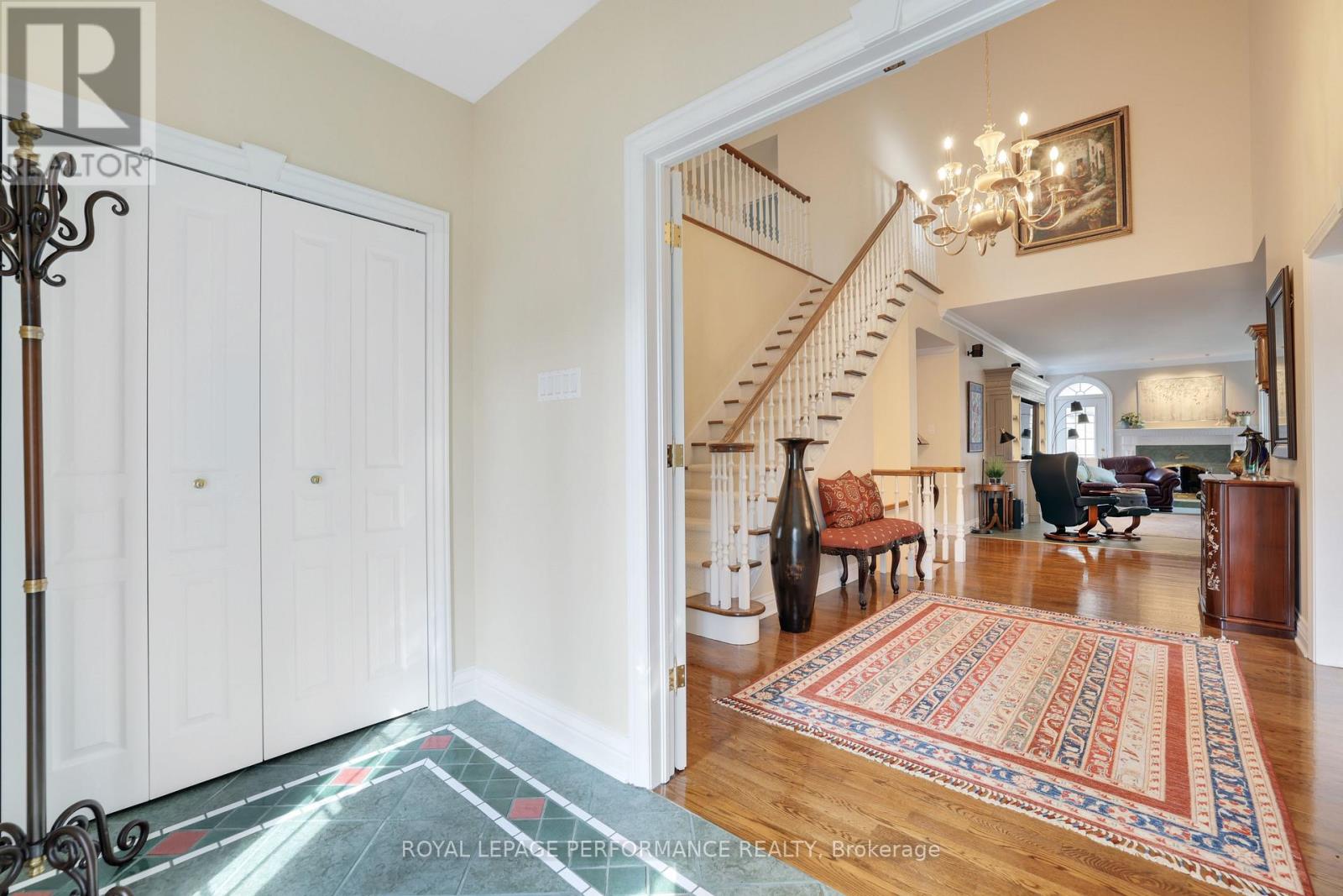 An exclusive executive estate with immaculately landscaped grounds. The 2.9-acre property is ideally located across from the Hawkesbury Golf Club. This meticulously maintained elegant home showcases over 4,500 sq ft of exquisite craftsmanship. Built by Daniel Rodrique, each room bears his distinctive, refined touch. The sunken living room with a gas fireplace and an elegant dining room complemented by a stylish butler's pantry and wet bar are perfect for large gatherings. The open-concept great room with fireplace features a 65 in TV and built-in sound bar and separate surround sound speakers with BOSE CD player. Access to a covered screened sunroom. A casual dining area and a generously appointed chef's kitchen with built in luxury appliances. A private side entrance opens onto a covered porch or entry to garage. Located on the main floor is the large primary suite with a gas fireplace, his-and-her closets and a luxurious bathroom. As well on main level a powder room and a guest bedroom with an ensuite bathroom. Upstairs, a serene library/office space with built in bookcases and two oversized bright bedrooms and a full bathroom. The lower level with high-quality laminated floors features a spacious family room with a walk-out to an all-season Zytco solarium and swim spa. Two additional guest bedrooms and a bathroom are also on this level. Basement includes a large game/hobby room and a professionally equipped workshop with 240V wiring and stairs to the garage with its own hot and cold-water taps. Bell fibre optic available. The exterior boasts superior landscaping with unique water feature, an irrigation system, and a spacious garden garage. Have family fun with a skating rink in winter and a soccer field in summer. This property offers comfort and an exceptional living experience. (id:28469)