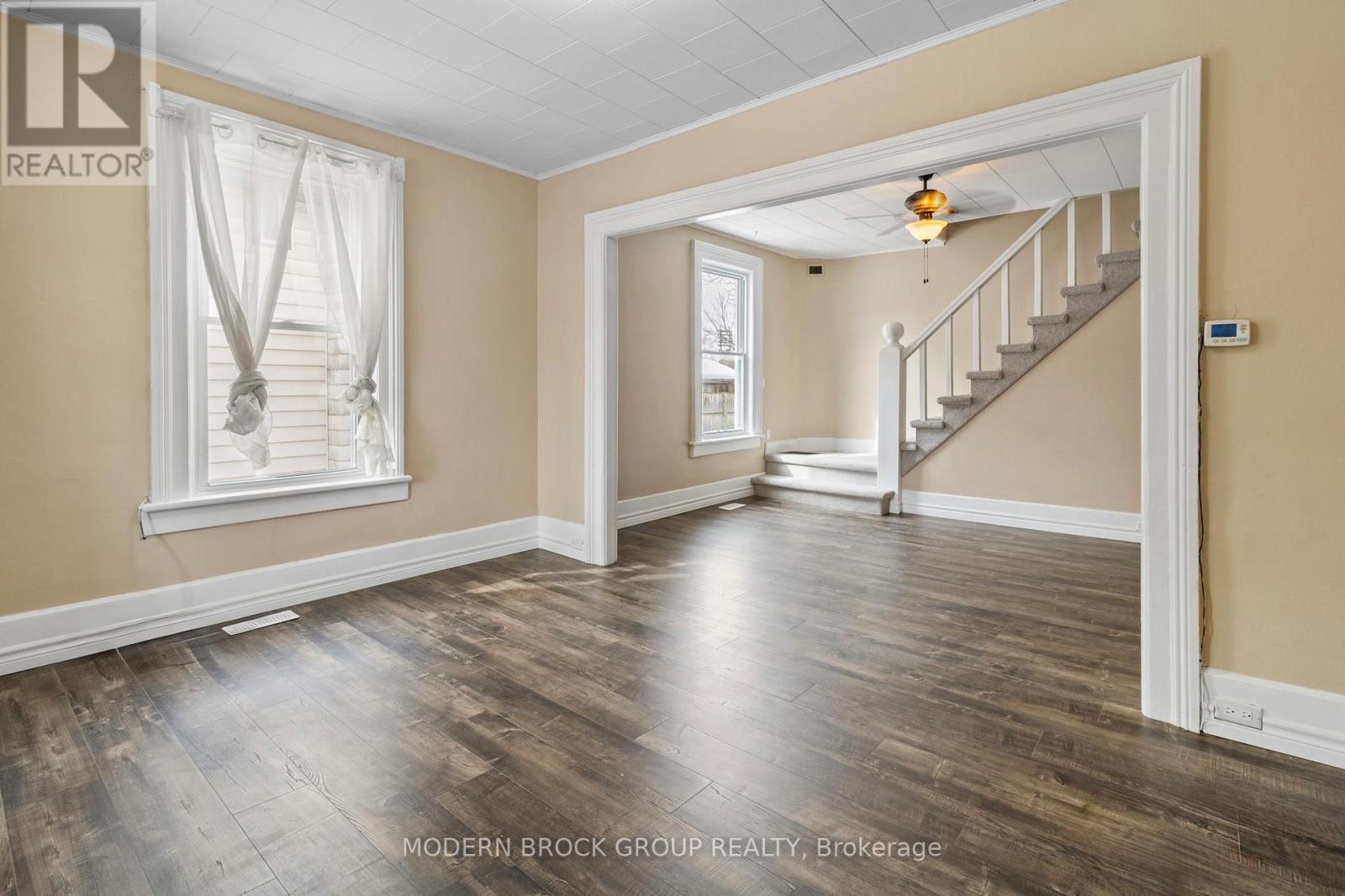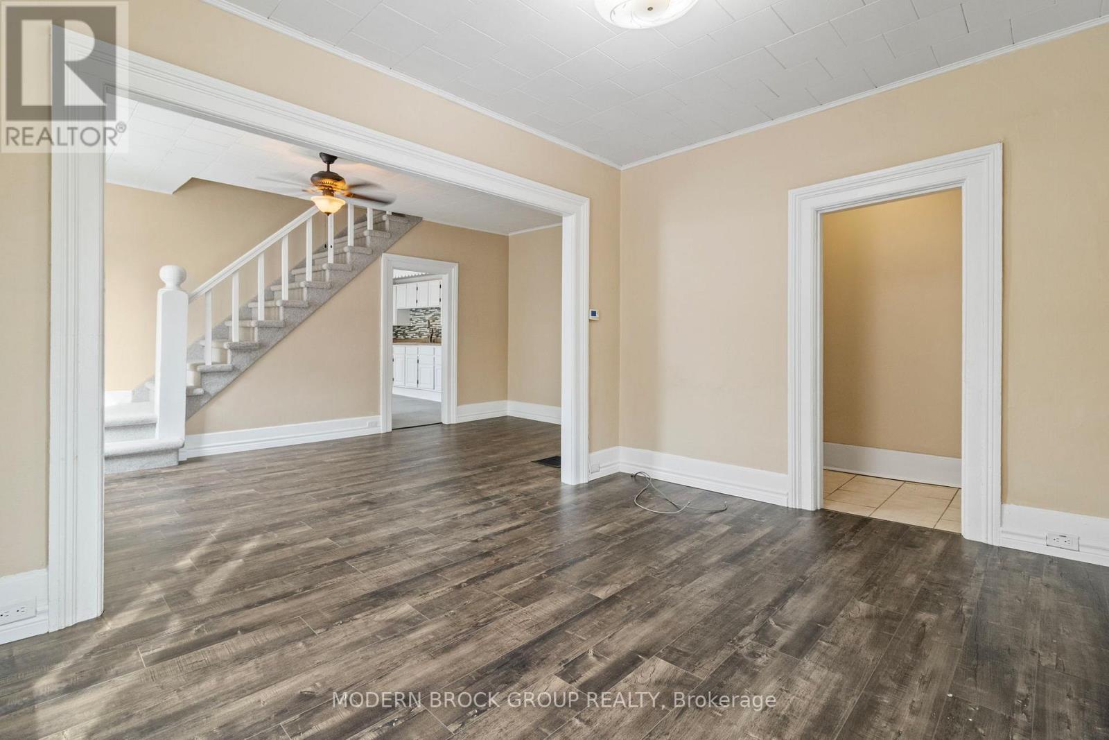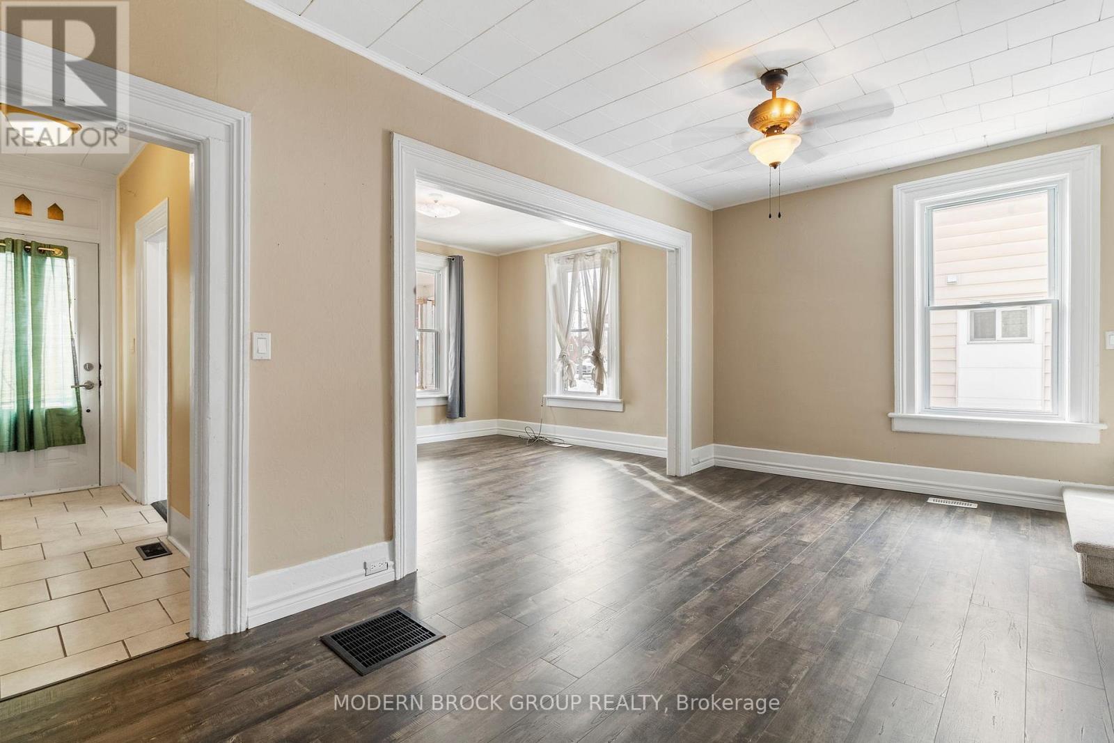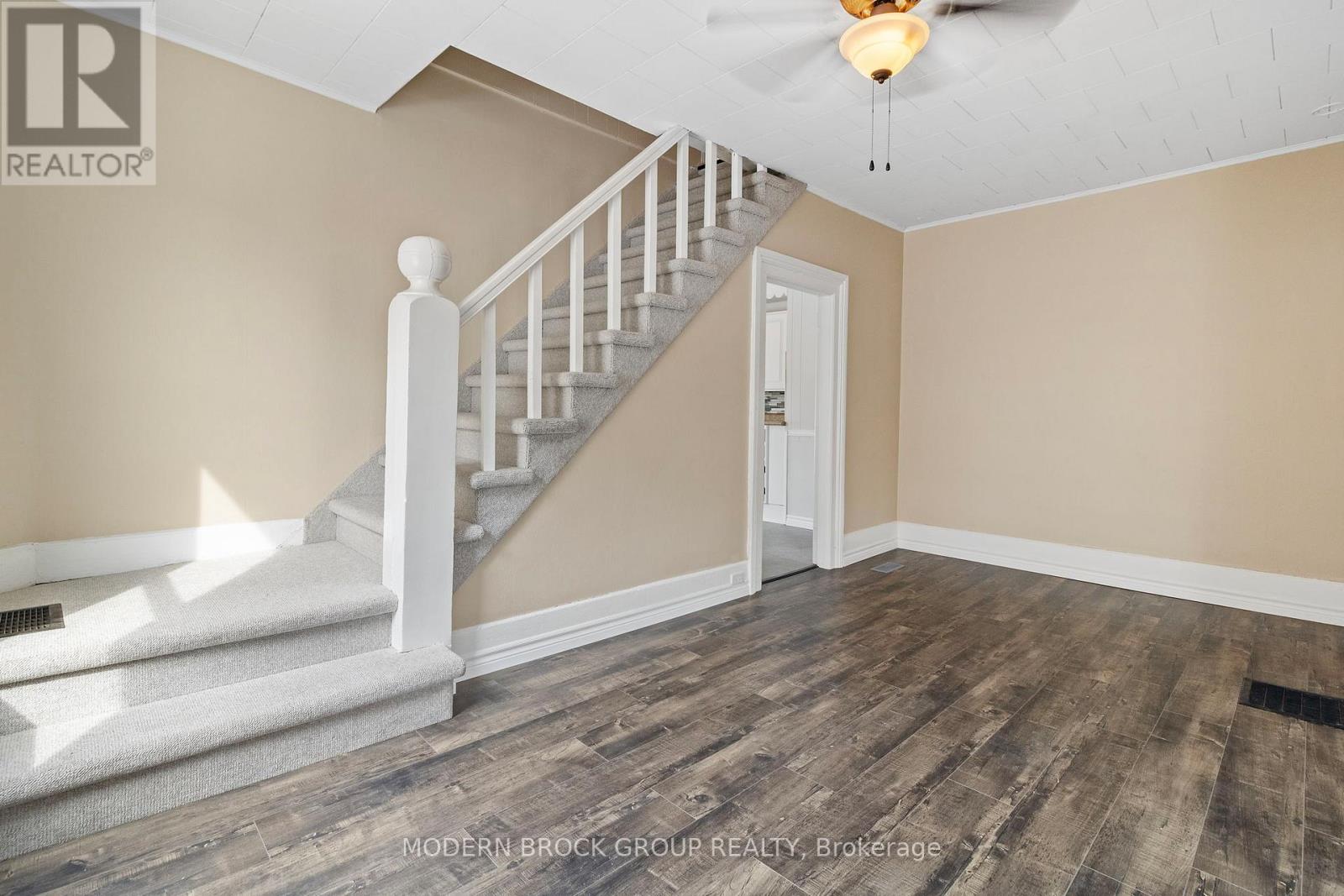 Great starter home close to downtown Brockville. This three bedroom, two bathroom home has been fully renovated and is ready for its next family. New roof in 2025, owned hot water tank in 2024, heat pump in 2021, natural gas furnace in 2012, newer 200 amp panel, freshly painted and new flooring throughout. All there is to do is move in and relax. The laundry in on the main floor and there is an extra room off of the kitchen, perfect for an office or a playroom for the kids. Book your showing today. ** This is a linked property.** (id:28469)