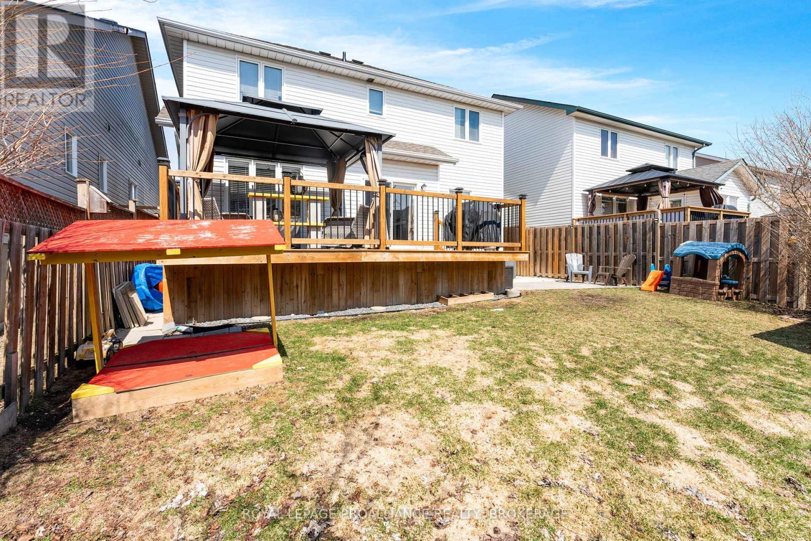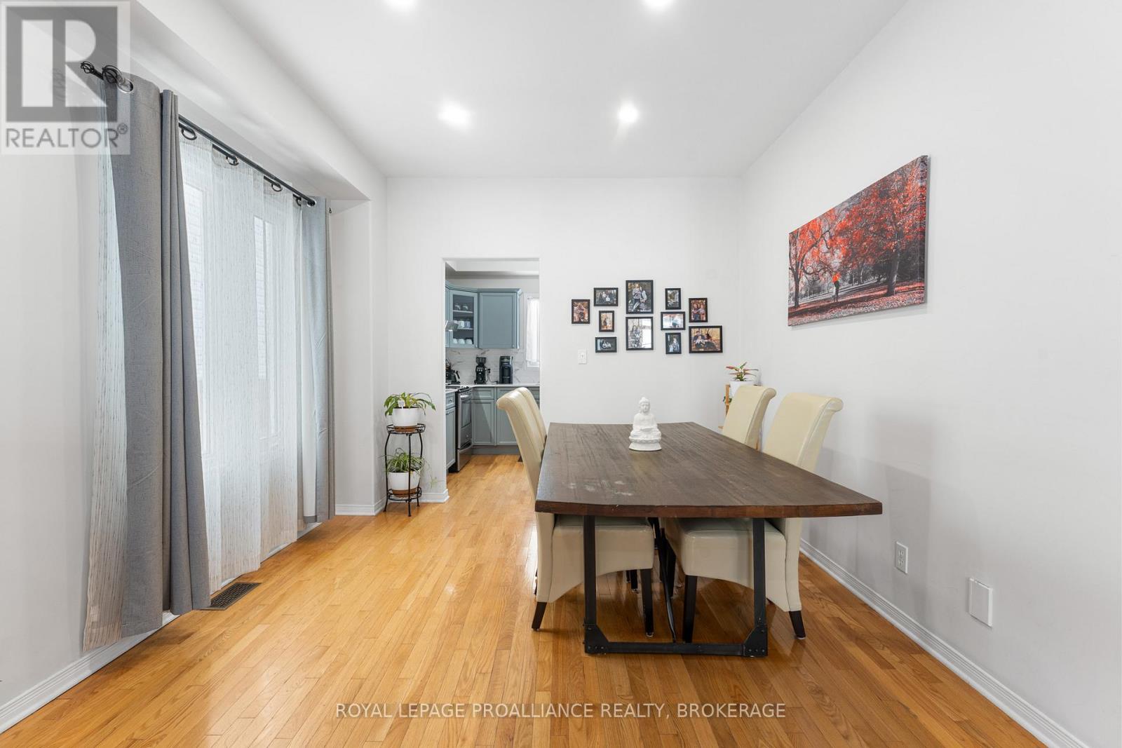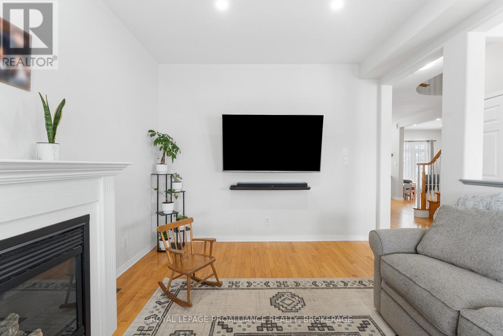 Welcome to 975 Bluffwood Avenue, where space, comfort, and location come together on a quiet, family-friendly street. This bright and inviting home offers a functional layout designed for real life, with hardwood flooring throughout the main level and continuing into every bedroom upstairs, no carpet, no compromises. The kitchen is the heart of the home, featuring ample cabinetry, 9-foot ceilings, and a sunny dining nook with walk-out to a fully fenced backyard, perfect for kids, pets, and easy summer living. The main floor strikes the ideal balance between open concept and defined spaces, with a cozy family room and gas fireplace flowing off the kitchen, while a separate living room and formal dining area provide flexibility for entertaining or quieter moments. Upstairs, the spacious primary suite offers a walk-in closet and private ensuite, complemented by three additional well-sized bedrooms, a full bath, and the convenience of second-floor laundry. The fully finished basement extends your living space with room for a home gym, rec area, or potential fifth bedroom, plus a rough-in for a future shower-giving you options as your needs evolve. Located just minutes from Highway 401, the Waaban Crossing, CFB Kingston, schools, parks, and everyday amenities, this is a home that checks all the boxes for growing families and smart buyers alike. (id:28469)