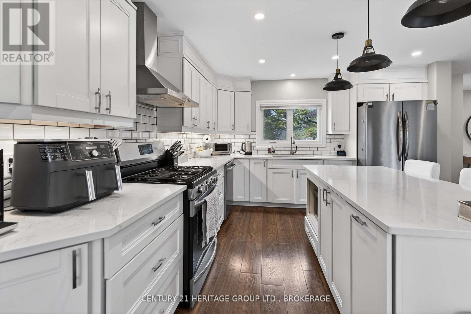 WOW FACTOR! The home you've been waiting for. This fully renovated 3+1 bedroom, 3 full bathroom elevated bungalow combines stunning design with exceptional flexibility for today's buyers. Located in Kingston's highly sought-after Westwoods neighbourhood, known for some of the city's top-rated schools, this home is ideal for growing families or those seeking multigenerational living potential. With just a few quick adjustments, the secondary suite can be ready to go, transforming this charming bungalow into a functional and inviting multigenerational home. The bright, open-concept main floor is ideal for owners looking to offset their mortgage by completing the 90% finished in-law suite, or simply enjoy it as it is currently used as a complete single-family home. The beautifully finished kitchen flows seamlessly into the main living space. The primary suite is a true retreat, complete with a custom walk-through closet and a spa-inspired ensuite with porcelain floors and quartz countertops. The fully finished lower level is where this home truly shines. With a separate front entrance, spacious layout, large bedroom, full bathroom, roughed-in kitchen area, and washer/dryer hookups on both levels, this space is perfectly set up for a future in-law suite or secondary unit-just add a kitchenette to complete the setup. Extensively updated, the home was fully renovated in 2019, with a furnace installed in 2018. In March 2024, all bathrooms were re-tiled and updated, vinyl plank flooring was added to the laundry and playroom, and the basement bathroom septic pump chamber was completed. Enjoy the added bonus of a drive-through garage and a large, fully fenced backyard-perfect for families, entertaining, or added tenant appeal. Ideal for multi-generational living or buyers seeking a mortgage helper, this home offers space, flexibility, and long-term value. (id:28469)