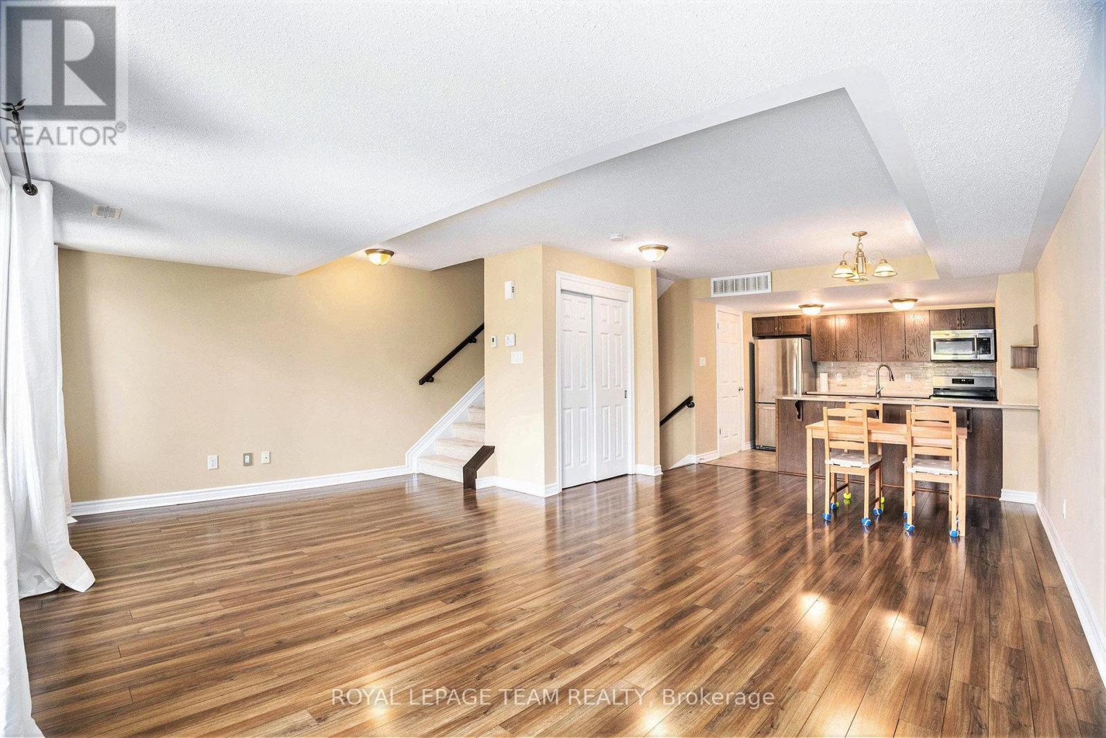 Discover this beautiful 2-storey upper stacked condo offering a spacious open-concept layout with hardwood floors throughout. The stylish kitchen boasts stainless steel appliances, a breakfast bar, and opens seamlessly into the main living area. This unit features two generously sized bedrooms plus a versatile den perfect for a home office. Enjoy easy access to public transit, restaurants, shopping (including Placed' Orléans), scenic walking paths, and nearby recreation. Step out onto your private balcony off the primary bedroom and take in the view with your morning coffee or tea. Includes one underground parking space. No pets. No smoking. All rental applications must include photo ID(s),completed rental application, proof of income/employment, two recent pay stubs, full credit report with score(s), and signed Schedule B. Photos taken last summer. (id:28469)