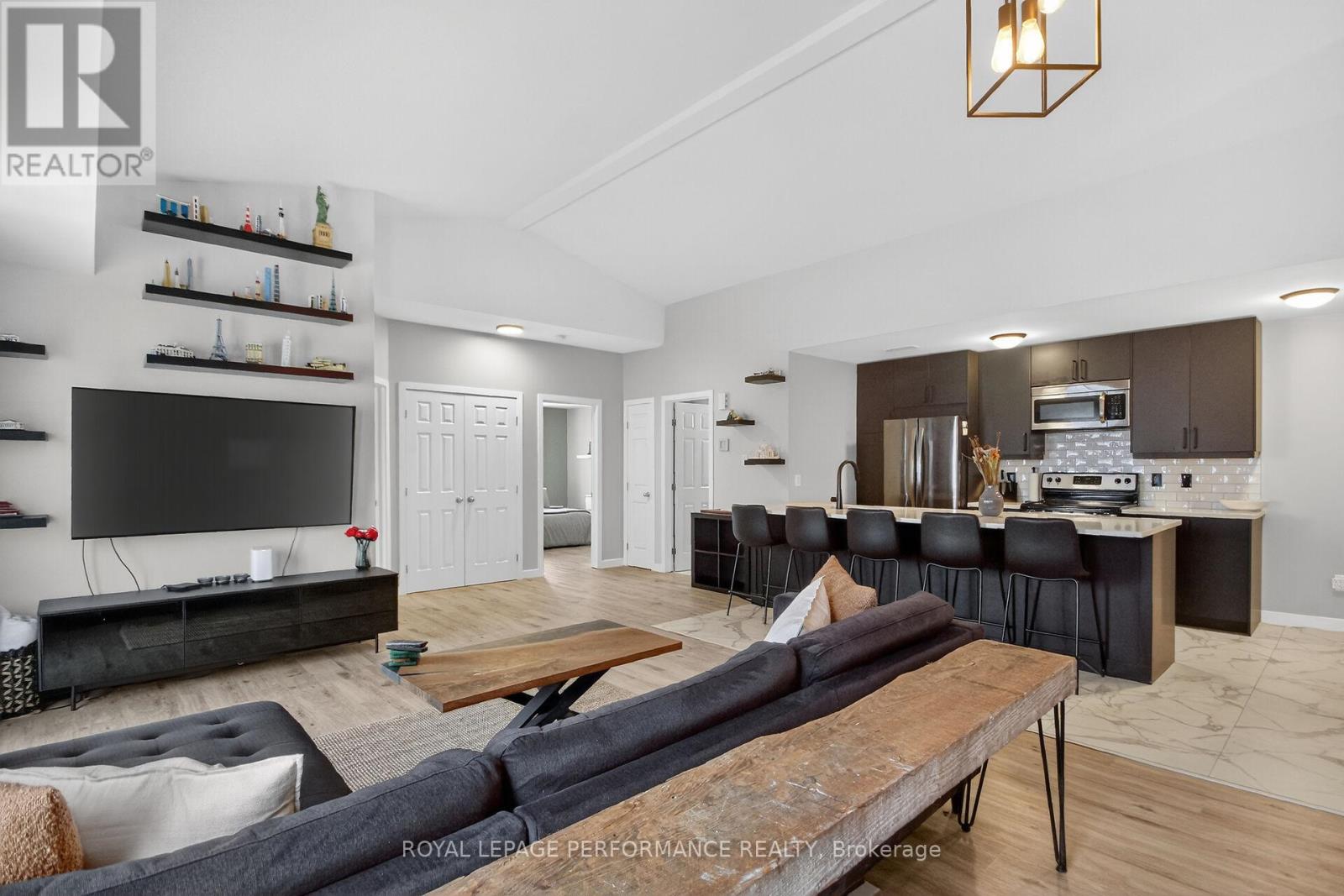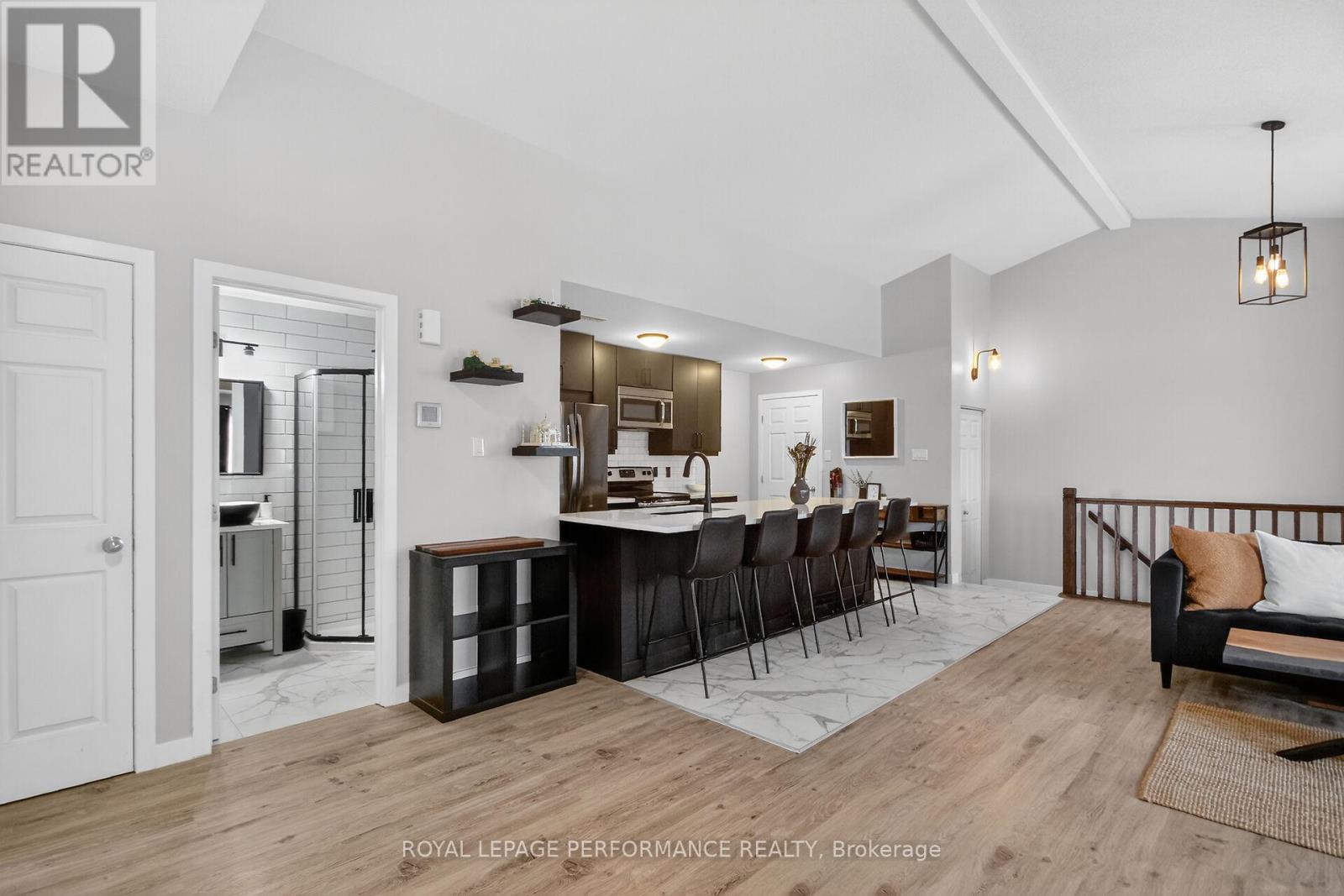 $449.61 MonthlyRarely offered top-floor 2-bedroom, 2-bathroom condominium in sought-after Kanata South. This fully renovated unit is filled with natural light, vaulted ceiling, and features a modern open-concept layout with afully renewed kitchen, complete with a large 10-foot quartz island, new cabinetry, and contemporary finishes throughout. The spacious primary bedroom includes a private ensuite, while the second bedroom is ideal for guests, a home office, or family use. Enjoy outdoor living on the oversized balcony with a natural gas hookup-perfect for BBQs and entertaining. Located in a well-managed condominium complex, this move-in-ready apartment offers a rare opportunity to own a beautifully updated unit in a prime location close to parks, shopping, transit, and all amenities. Check out the attachment for the list of improvements! (id:28469)
