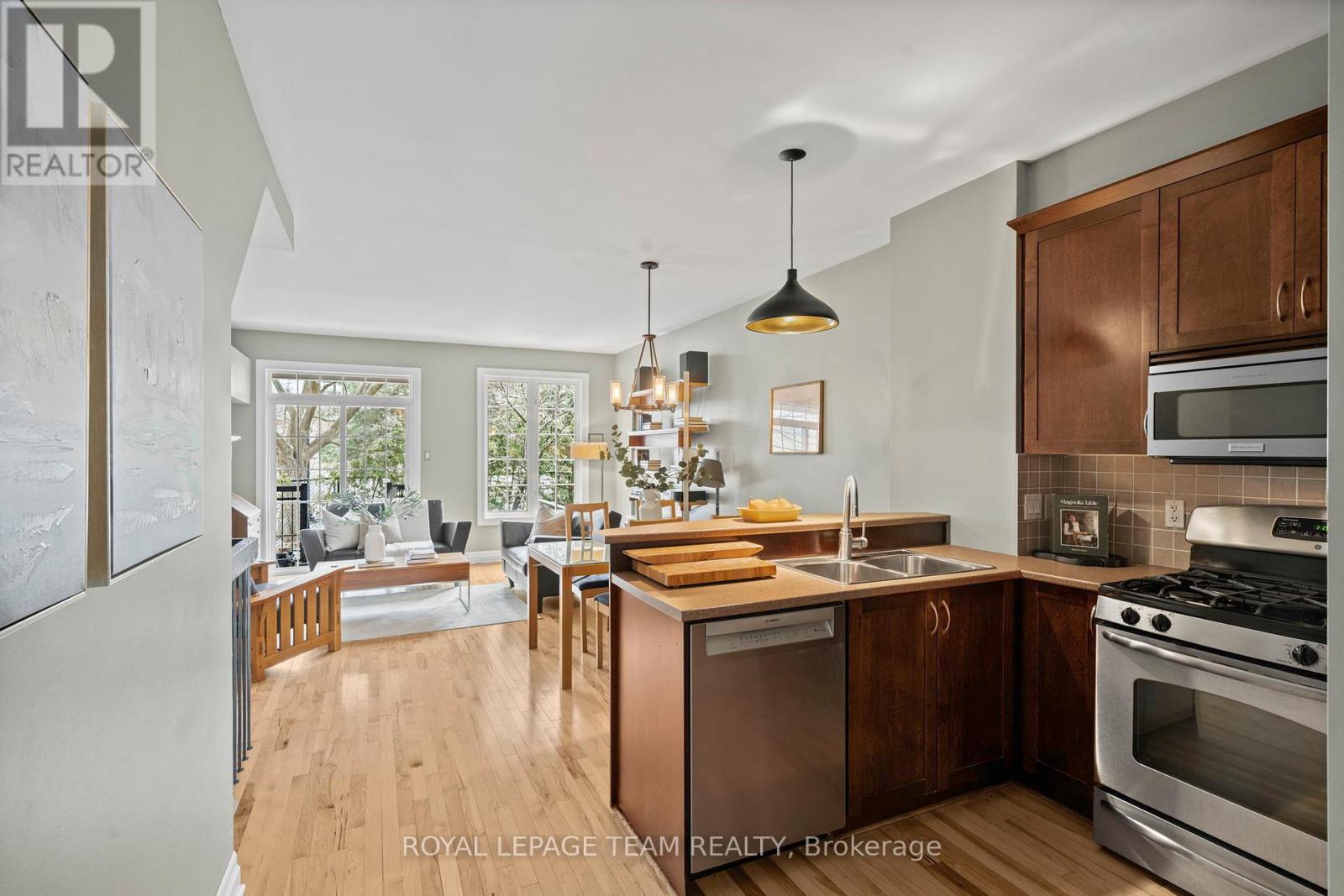 $460.17 MonthlyRarely available two-level condo in the sought-after Hintonburg School House Lofts on the Park, offered for sale for the first time by the original owner! Just a little over 1200 sq/ft of finished living space. Step inside to a bright foyer featuring a convenient powder room and a spacious in-unit storage room with ample shelving. The main level offers an inviting open-concept kitchen, living, and dining area, complete with a cozy gas fireplace-perfect for relaxing on snowy winter evenings. The lower level features a versatile second bedroom that easily doubles as a guest room or home office, with large east-facing windows and a full wall of closet storage. At the front of the unit, the generous primary bedroom offers a walk-in closet and an oversized window that fills the space with natural light. Between the two bedrooms is a large bathroom with both a soaker tub and walk-in shower. An in-unit laundry area completes the lower level. Step outside to your private backyard patio-ideal for relaxing or entertaining-with a convenient gas BBQ hookup. Recent updates include a new furnace and hot water tank (2025).Unbeatable location: Live steps from everything that makes Hintonburg one of Ottawa's most vibrant communities. Your backyard is beloved Hintonburg Park, and you're just moments from local favourites including House of Pasta, The Marché Hintonburg, The Elmdale Tavern, The Third, and Bridgehead Coffee, plus many more shops and cafés. Additional features:Parking spot #14 included. Condo documents on order and available soon. Don't miss your chance to own this rare gem in one of Ottawa's most dynamic neighbourhoods. (id:28469)